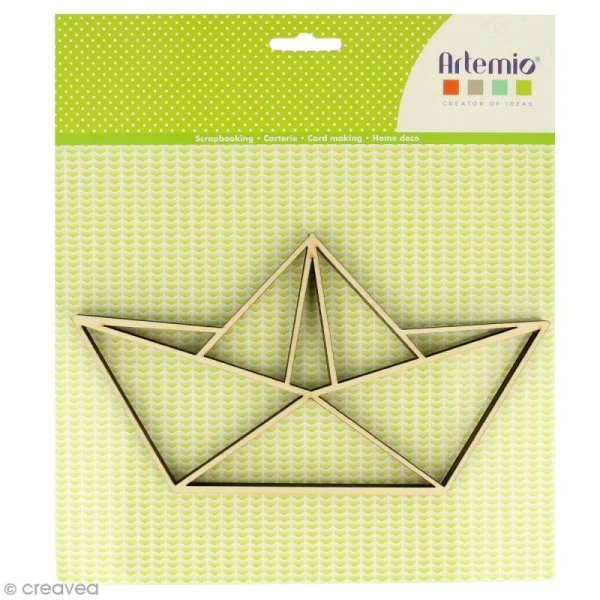 Forme ajourée Bâteau origami en bois de 20 x 11 cm, idéale pour une belle décoration moderne ! Cette forme en bois ajourée vous offrira de nombreuses possibilités créatives et décoratives !