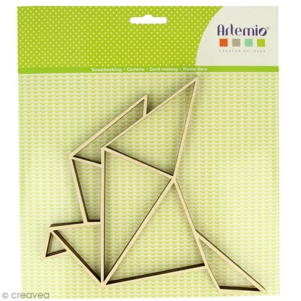 Description de Forme en bois à décorer – Cocotte origami – 20 x 20 cm