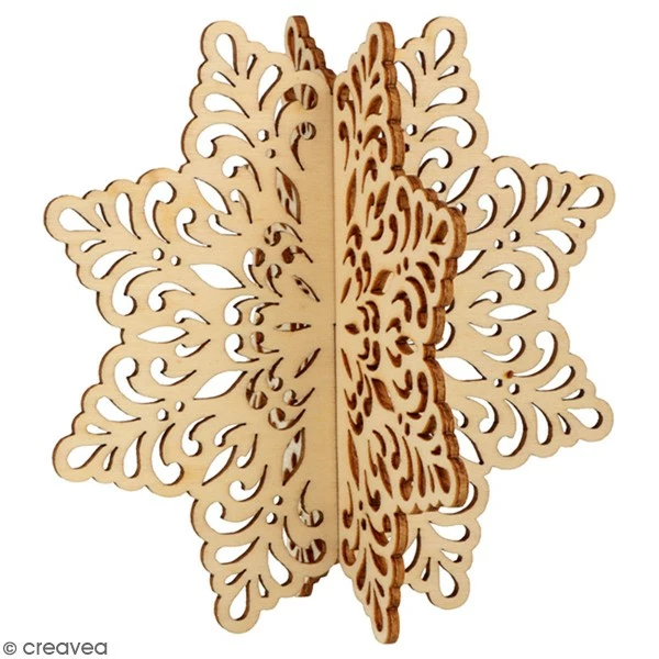 Ce motif en bois 3D, en forme de flocon, est très facile à monter. En assemblant les 2 pièces en bois, vous obtiendrez une déco du plus bel effet !
