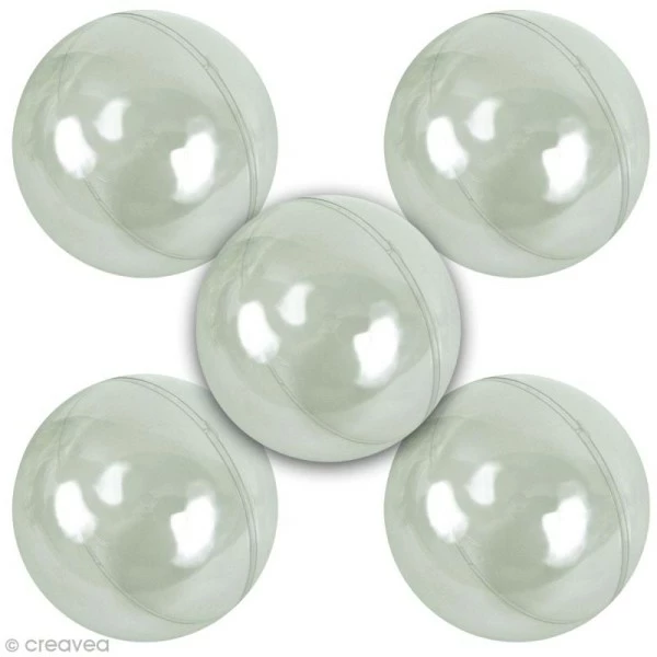 Lot de 5 Boules en plastique cristal Transparent en 2 parties avec anneau de suspension.