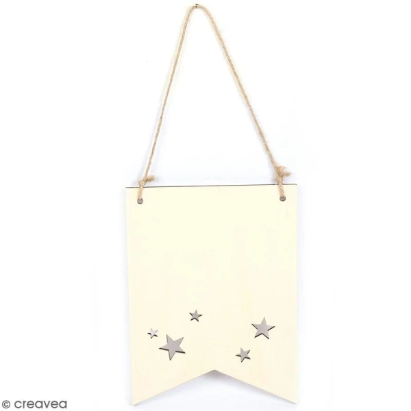 N’hésitez pas à décorer ce fanion Etoiles ajourées en bois de 15 x 20 cm à l’aide de peinture, de Décopatch, de paillettes, etc. Toutes les techniques créatives sont permises, vous pouvez même vous lancer dans la pyrogravure ou encore la mosaïque.