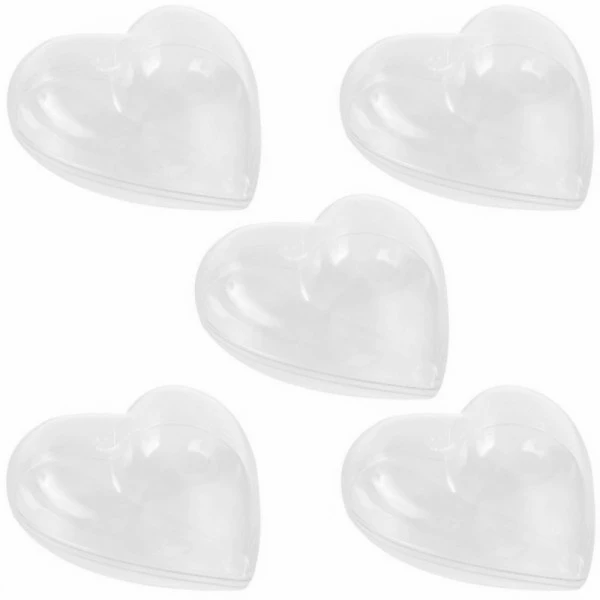 Description de Lot 10 Coeurs en plastique de 8 cm, transparent séparable, Contenants sécables à garnir