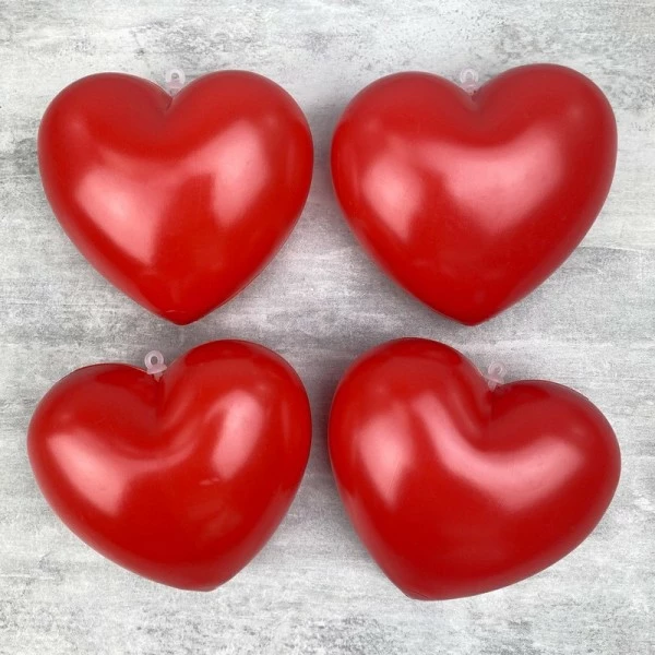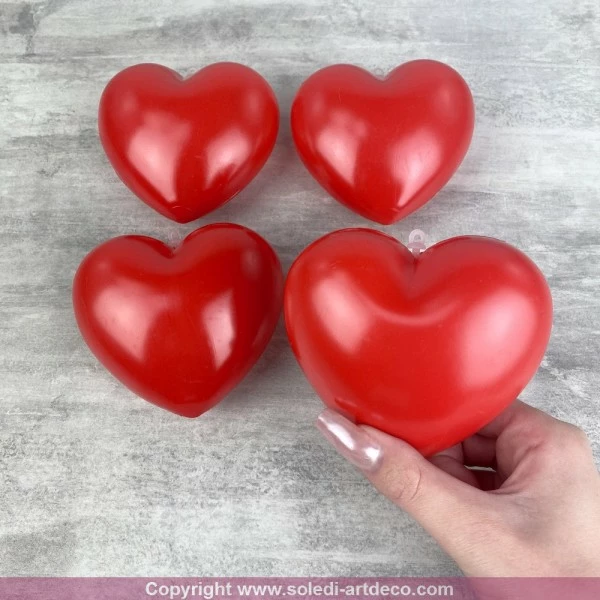 Description de Lot de 4 Coeurs Rouges en plastique non séparable, 9,5 x 8 cm, avec accroches à suspendre, déco roma