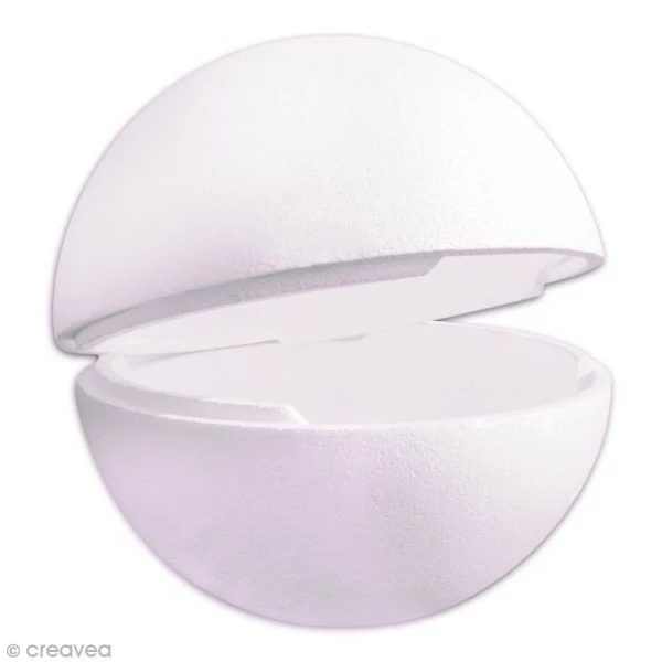 Cette boule en polystyrène ignifugé blanche de 30 cm de diamètre est composée de deux demi-sphères assemblables. Ces deux demi-sphères creuses pourront facilement semboîter pour former une parfaite boule en styropor.
