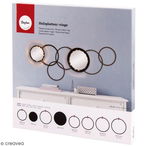 Cet assortiment d’anneaux en bois vous permettra toutes les folies créatives en fonction de la saison ou de l’événement. Vous pourrez créer toutes sortes de suspensions murales comme des couronnes de fleurs, couronnes de noël, des attrape-rêves ou des éléments home déco comme une suspension lumineuse. Les possibilités de création sont infinies.