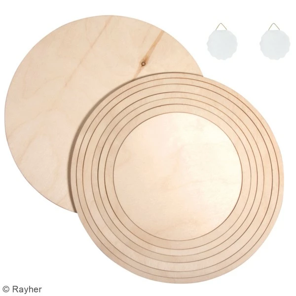 Cet assortiment de cercles en bois à décorer est composé de 6 anneaux en bois mesurant de 16,9 à 24,7 cm ainsi que de 2 plaques rondes de 14,9 cm et 24,7 cm de diamètre.