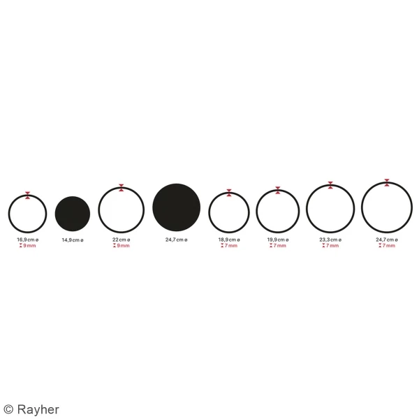 Données techniques pour Set Cercles en bois – De 16,9 cm à 24,7 cm – 8 pcs