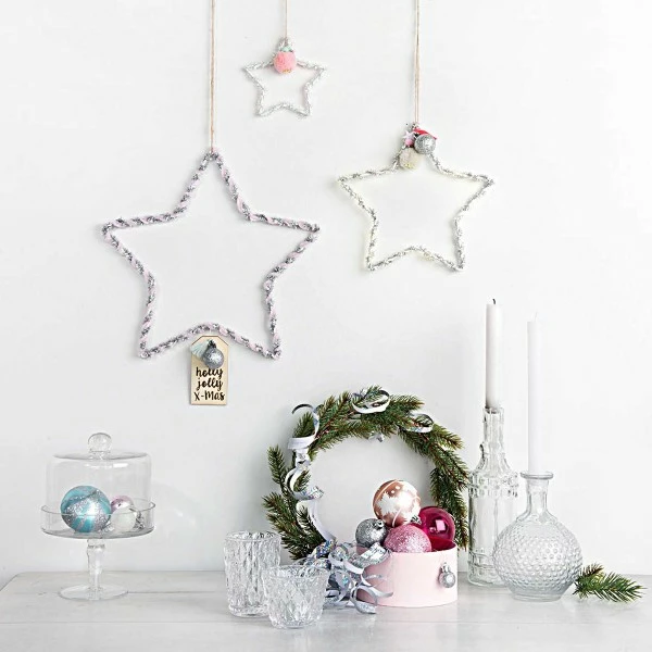 Vous pourrez aussi enrouler une guirlande lumineuse autour de cette Étoile en métal pour faire une jolie décoration lumineuse de Noël et pour toute l’année ! Une autre astuce déco : Recouvrez la forme en métal en l’enroulant avec de la ficelle, du fil en coton, de la laine, des perles, etc. Vous pouvez également le peindre, grâce à de la peinture en bombe, pour accorder la couleur de la forme à la déco de votre intérieur ou la chambre de votre enfant !